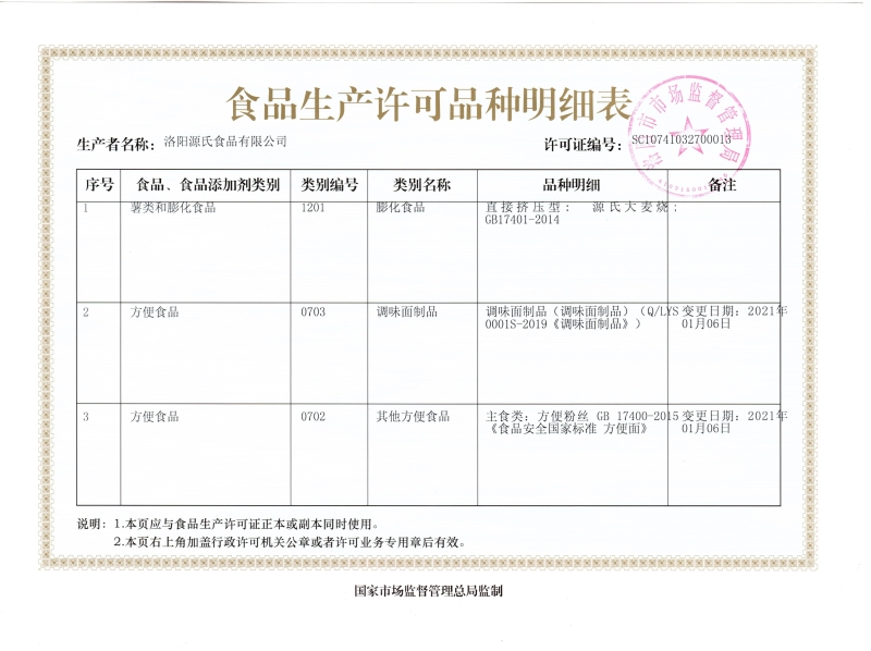 源氏食品生產許可證及細節列表 發布時間:2021-03-02作者:來源:洛陽源氏食品有限公司點擊:6505 上一篇:營業執照 下一篇:老式大辣片出廠檢驗 分享到:0 用手機看 拍下二維碼,信息隨身看 試試用微信掃一掃,在你手機上繼續觀看此頁面。