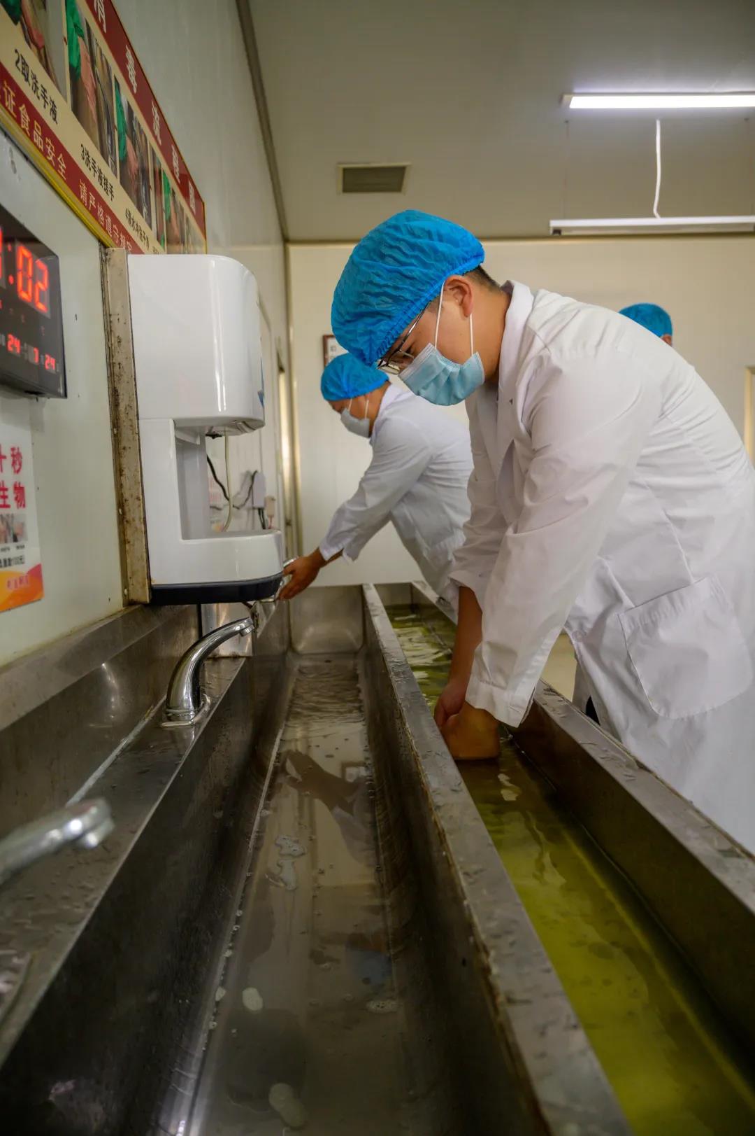 嚴格遵守源氏食品相關規(guī)定,全副武裝、洗手消毒、360度風淋除塵之后進入生產(chǎn)車間